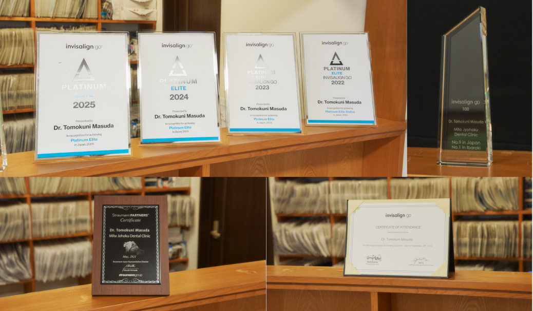 マウスピース矯正の最大手でグローバルブランドであるインビザラインにおいては茨城県下症例数1位、全国TOP10に入ったこともあり、4年連続で豊富な症例数を保有する歯科医に認定されるプラチナエリートに認定されております。部分矯正やさらにリーズナブルな提供が可能なグローリースマイルの取り扱いも行っております。